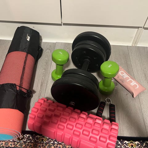 RESERVERT Vekter og treningsmatte selges billig