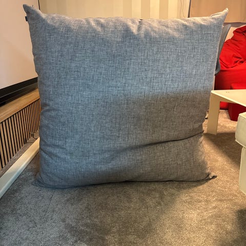 Løs Bolia hodepute i ullstoff til stol. Den kan reguleres, og har lodd i ene enden slik at den holdes på plass. Håndlaget I Danmark.