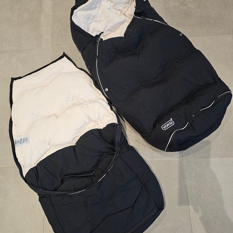 Posen har åpninger til seler, glidelås i siden og hette. Innside i lys tekstil med mønster. Egnet til bruk i barnevogn eller bilstol for å holde barnet varmt og beskyttet i kjøligere vær. Passer til 5-punktsele.