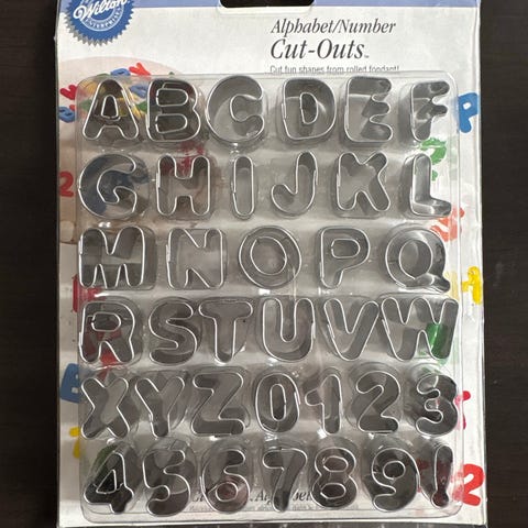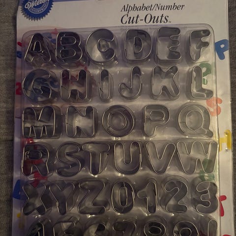 Utstikkere i bokstavformer fra Cacas, aldri brukt.