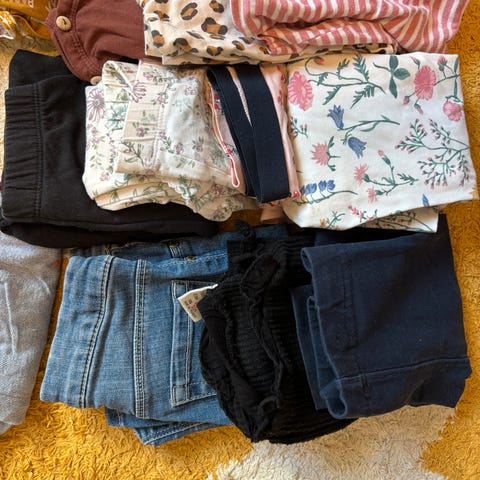 Selger en klespakke med klær i størrelse 134-140. Alt er pent brukt med normalt slitasje, noen få plagg med små detaljer (se beskrivelse).