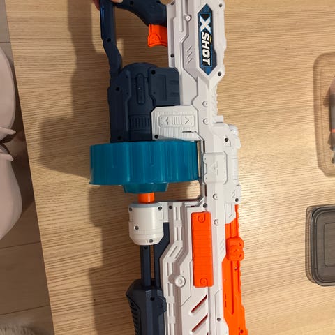 2 Nerf leker til salgs, en er batteri dreven nettopp byttet batteri og den andre er manuel dreven. Den batteridreven tar opp 10 Nerf piler men det mangler 6 stykk, den manuelle tar opp 40 Nerf piler og mangler 9 stykk.