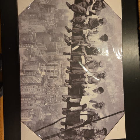 Selger stort lerretsbilde med motivet Lunch at Top of a Skyscraper fra Photowall. Pent brukt og i god stand.