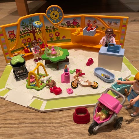 Selger et pent brukt sett fra Playmobil. Forestiller et supermarked med masse tilbehør som kasseapparat, kjøledisk, matvarer og drikke. Følger også med figurer til butikken, samt en familie med bil.