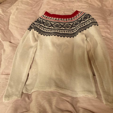 Hjemmestrikket Marius genser i str xs selges da den er blitt for liten, veldig lite brukt.