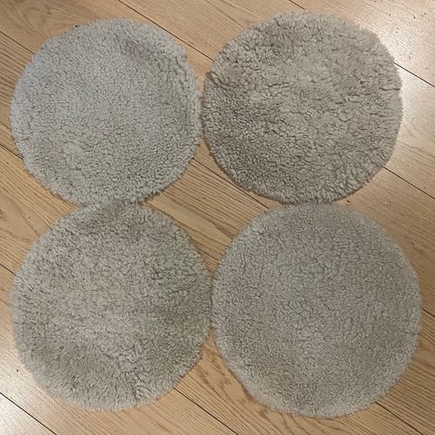 Fine stolputer i saueskinn. 200 per / 550 for alle tre.