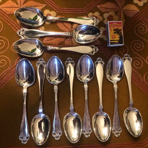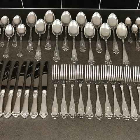 Om du ønsker å samsende, har jeg også noen andre deler fra sølvmønsteret Laila som er annonsert til salgs på Finn. Du får frem de andre annonsene ved å søke med følgende søkeord på Finn: