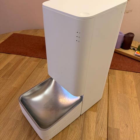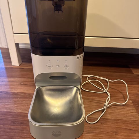 Fôrautomaten er beregnet for tørrfôr til kjæledyr som katt og hund. Den leveres i original eske med bruksanvisning og strømkabel. Enheten har innebygd WiFi og kan styres via app ifølge manualen. På toppen er det lokk til fôrbeholderen, og foran er det åpning for fôrskålen.