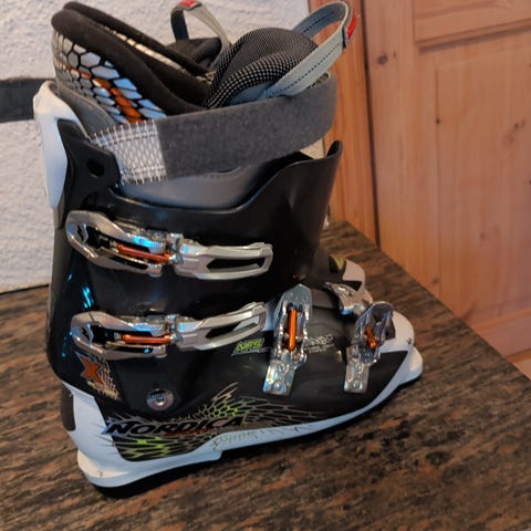 Nordica skistøvler i hvit farge. Modellen har fire spenner foran og borrelåsstropp øverst for bedre tilpasning rundt leggen. Innerstøvelen er polstret for økt komfort og støtte. Yttersålen er utformet for godt feste i bindinger. Passer til alpint bruk.