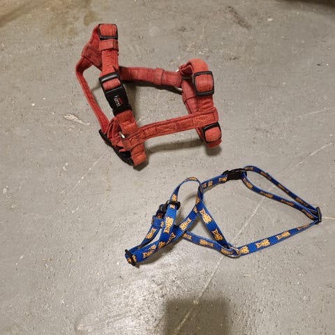Diverse tilbehør til liten hund. Flexibånd small, halsbånd small, klosaks, tangle fix og tynnekniv, bæsjeposer følger med. Selges samlet for kun 70 kr.
