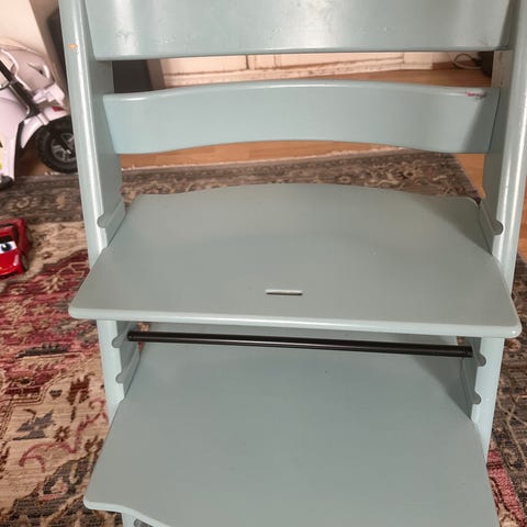 Klassisk trappeformet stol med justerbart sete og fotbrett som kan tilpasses barnets høyde.