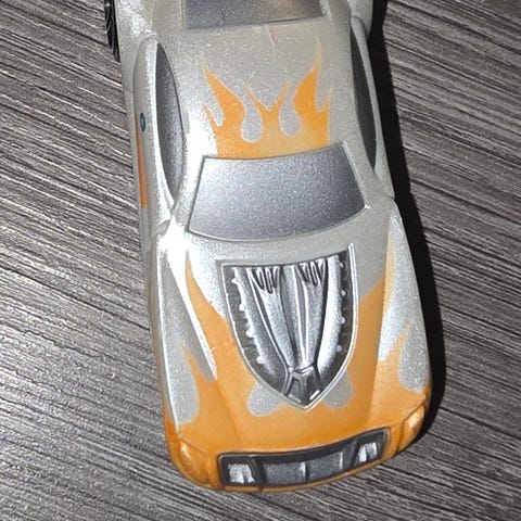 Foose lekebil i rød farge. Modellen er en liten bil i metall med plastdetaljer og rullende hjul. Underdelen er i metallfarge med støpte detaljer av eksosanlegg og chassis. Tak og panser er røde, og bilen har trykte logoer og tekst på taket og panseret. Egnet som samlerobjekt eller lekebil for barn som liker små bilmodeller.Dette er en '59 Chevy Bel Air fra Hot Wheels, utgitt som en del av deres "Pride Rides"-serie eller "Roll Patrol"-serie tidlig på 2000-tallet.