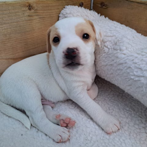 Perle er en utrolig snill og energisk liten dame. Hun går fint overens med katter og er veldig snill med barn.