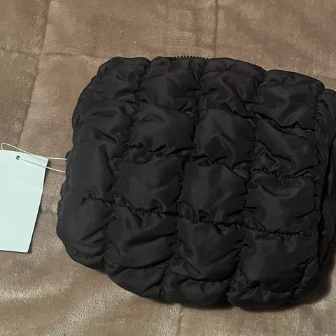 laptopmappe i svart farge for unisex. Mappen har myk, teksturert utside med enkel smiley-dekor på den ene siden. Innsiden er polstret for å beskytte enheten mot riper og lette støt. Lukkes med glidelås langs den ene kanten. Egnet til oppbevaring og transport av bærbar PC eller nettbrett innenfor tilsvarende størrelse som mappen rommer.