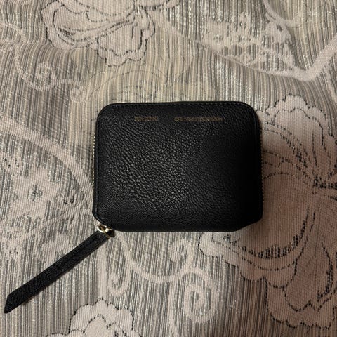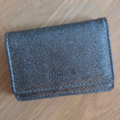 Don Donna lommebok for dame i svart farge. Lommeboken har glidelåslukking rundt kanten og flere kortlommer på innsiden, samt egne rom for sedler og småting. Metallplate med Don Donna-logo på forsiden og metall-detaljer i gullfarge. Egnet til oppbevaring av kort, kontanter og små nødvendigheter i hverdagen. Pent brukt.