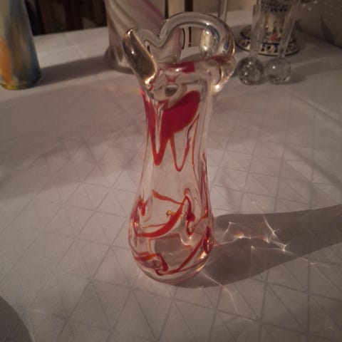 Rød og flott vase uten skader fra 60 tallet selges kr 500,-
