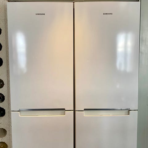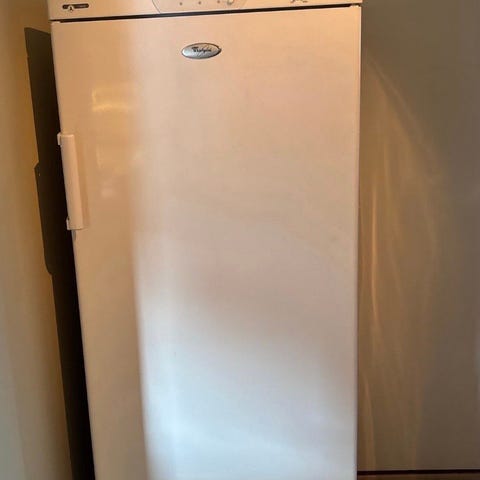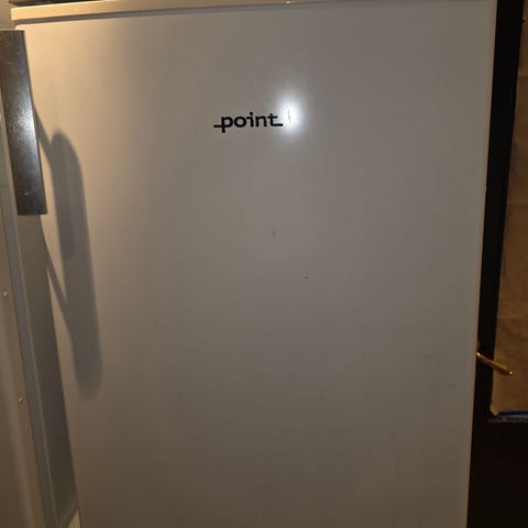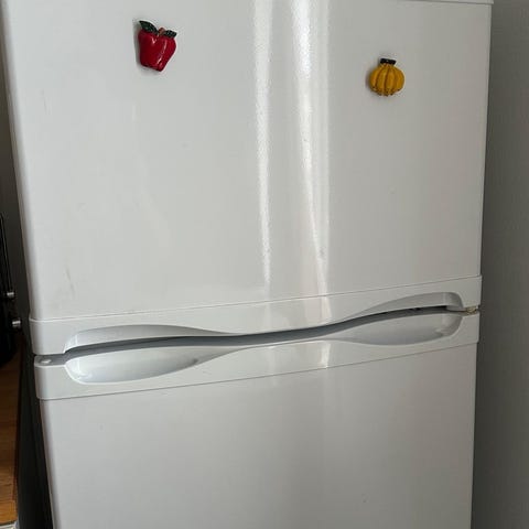 Kjøledelen har flere justerbare glasshyller, dørhyller og en grønnsaksskuff. Drikkevarehyllen som skal være i døren er ødelagt, men kan tapes fast.