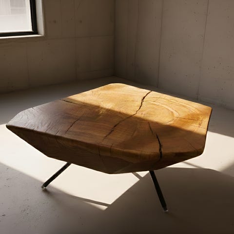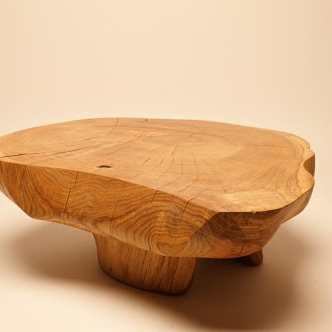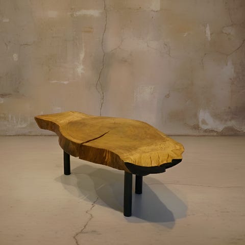 Et anker av ro. En dialog med treet: hva betyr det å være et møbel, men samtidig forbli seg selv? Dette er ikke bare et bord eller en benk, men et kunstobjekt som bevarer treets naturlige form, uttrykk og historie.