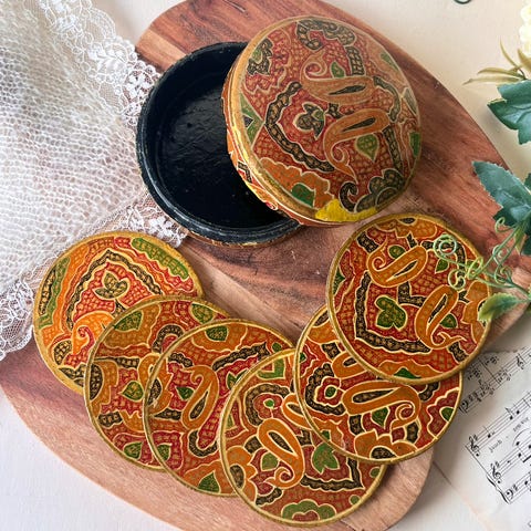 To stk vintage glassunderlag / drikkebrikker i klart glass. Underlagene har et flott, blomstermønster. Glassbrikkene kan også brukes som små lysfat. Smykkene følger ikke med. Se bilder for mål. ✨