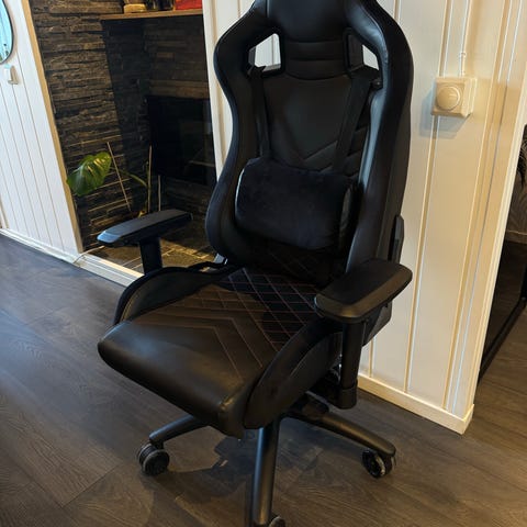 Veldig solid og stor stol, ekstra stort sete. Pent brukt, ingen synlige skader eller merker. Mangler ryggputen og "hev og senk" mekanismen ble aldri montert.