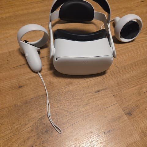 Jeg selger mitt Meta Quest 2 VR-headset da det ikke blir brukt lenger. Headsettet har vært lagret trygt og fungerer som det skal. Dette er et veldig godt inngangspunkt for deg som vil teste VR, spille, trene eller oppleve virtuelle spill og apper uten behov for PC eller konsoll.