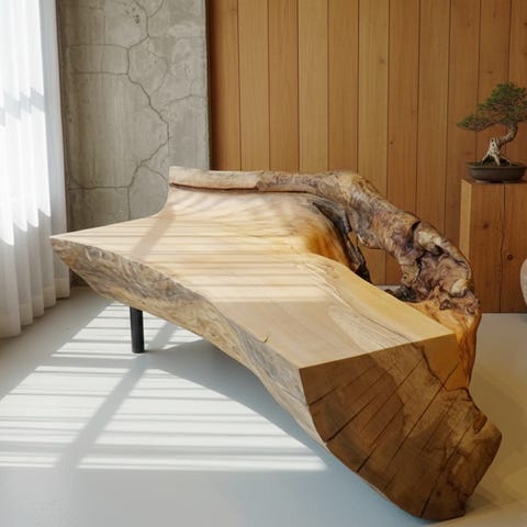Dette er et kraftfullt og solid bord laget av massiv eik – tungt, stabilt og bygget for å vare i generasjoner. Den rene, moderne formen kombinert med treets naturlige struktur skaper et uttrykk som er både minimalistisk og imponerende.