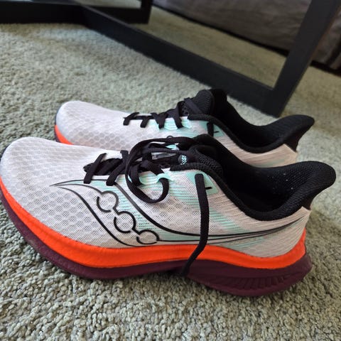 Selger et meget lite brukt par av Saucony sin Endorphin Speed 5, i Nordic Edition-farger. Som nye! Flott par til daglige turer, og de litt raskere dragene!