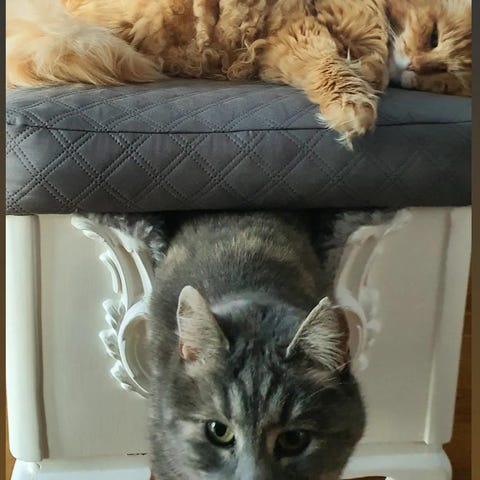 Oppbevaringskasse med inngang på den ene siden. Brukes som mulighet for retrett og for å slappe av for katt. Kan lage flere innganger eller selge uten innganger om ønskelig.