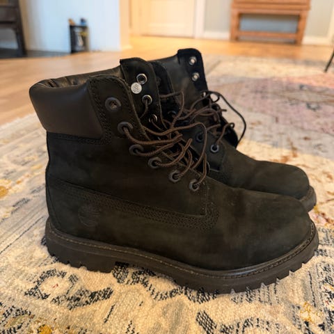 Timberland støvler i størrelse 37. Modellen er ankelhøy med snøring og kraftig yttersåle med grovt mønster. Farge svart. Overdel i skinn/nubuk med polstret ankelparti for ekstra komfort. Passer til bruk i hverdagen og i enklere friluftsliv der det er behov for stabile og robuste sko.
