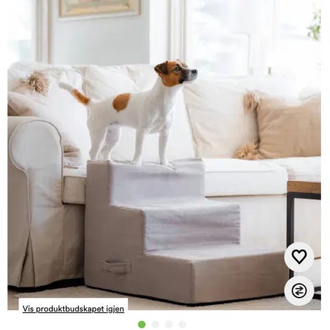 En grei liten trapp som mindre hunder kan bruke for å komme seg opp og ned fra f.eks sofaen. Trappen er hull og man kan derfor oppbevare diverse ting inni den.