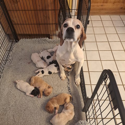 Valpene er godt sosialisert rundt barn og andre dyr.