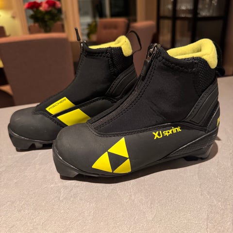 Fischer XJ Sprint langrennsstøvler for barn i svart og gul farge. Modellen har glidelås foran og overtrekk som beskytter lissene. Innside med polstret, lys gul fôrkant for økt komfort. Egnet til bruk på langrennsturer og skilek for barn.