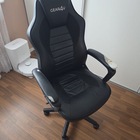 Helt ny Gamingstol kjøpt på jysk for 1 mnd siden ca men kun skrudd den sammen og plassert den under skrivebordet men siden vi ikke skal ha pc likevell blir den ikke brukt. Så er kun prøve sittet i ellers stått på samme plass siden den ble skrudd opp.