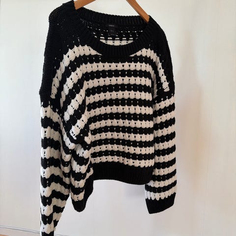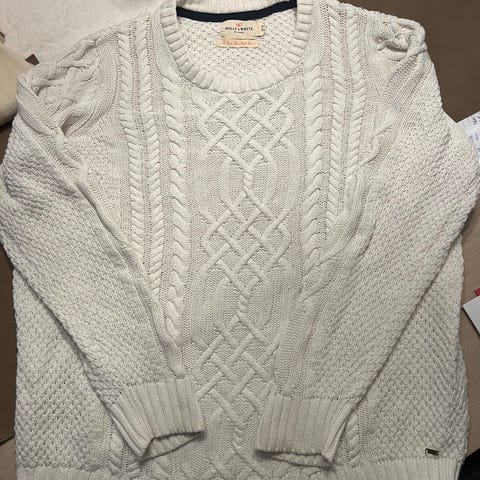 Lindex genser for dame i størrelse XL. Genseren er brun-oransje og strikket i 100 % akryl. Modellen har struktur- og flettestrikk foran og ribbestrikkede kanter nederst og på ermene. Passer til hverdagsbruk i kjølige perioder.