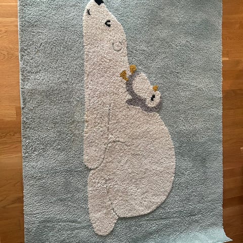 IKEA DRÖMSLOTT teppe med hundemotiv.