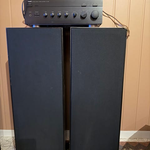 Yamaha stereoforsterker for tilkobling av lydkilder til høyttalere. Frontpanel med flere kontroller for volum, balanse, diskant og bass, samt innganger og brytere for ulike funksjoner. Egnet som sentral enhet i et hjemmeanlegg for avspilling av musikk fra ulike kilder.
