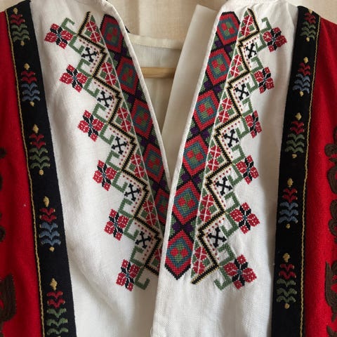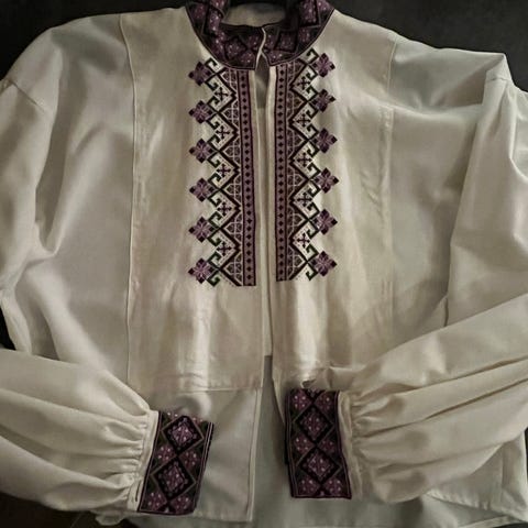 Selger den nydelige bunadsskjorten min siden den har blitt litt liten🩷Er str S/M, men vil si den passer bedre en S. Utrolig fint broderi og fine farger. Kjøpt på Norske Bunader i 2021 for 6900 kr. Veldig pent brukt, men har noen små bruksmerker som man så vidt ser (se de to siste bildene) etter deo osv. Skjorten er ikke strøket på bildene.