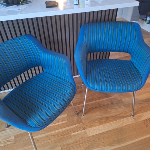 2 Mini-Kilta stoler. Finsk design. Noen bruksmerker, men i god stand. Understellene har ulike overflate, den ene crom og den andre matt stål. Se bilder for mål på stolene.