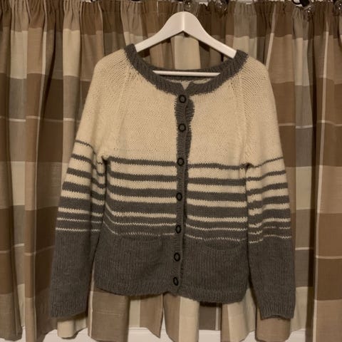 Lys-lilla strikket ullgenser H&M. Pent brukt. Str M: 170kr/bud.