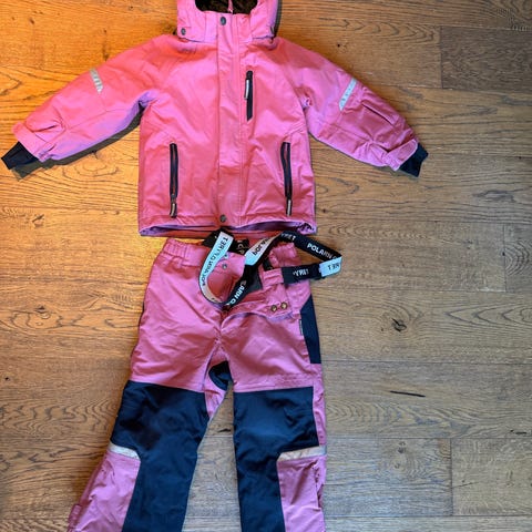 Bergans Storm Insulated jakke og bukse for jente i størrelse 104 i rosa farge. Sett med jakke og bukse i Gore-Tex-materiale.