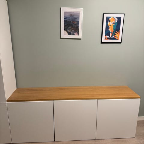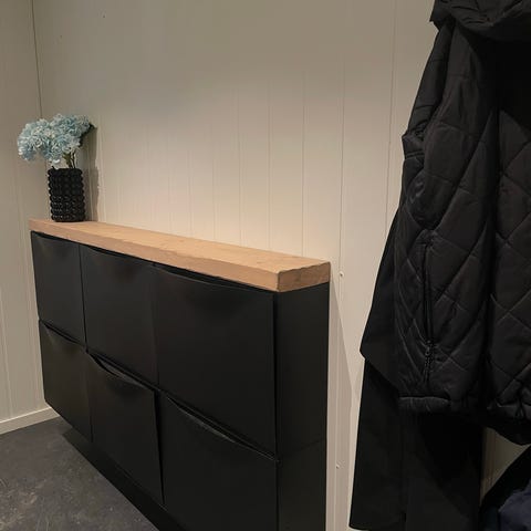 Selger en pent brukt hylle/benk fra merket BESTÅ fra IKEA. I hvitbeiset eikemønster. Passer fint som enten benk/skohylle i gang eller for eksempel TV-benk. Må hentes på Frogner i Oslo ☺️