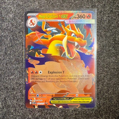 Pokémon Mega Charizard y EX kort. Kortet er fra Ascended Heroes så det er vanskelig å få tak i. Kortet er i perfekt tilstand og du får den sleeva. Selger betaler for frakt😃
