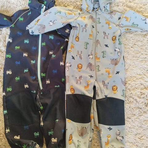 Regndress med fleece på innsiden, størrelse 104, brukt i én sesong. Den har litt slitte strikker nederst på buksebena.