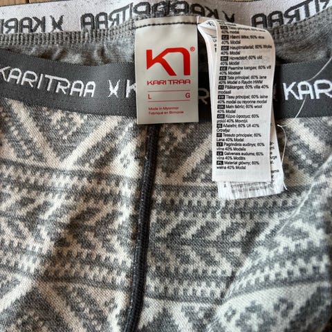 Kari Traa ullstillongs for dame i størrelse L. Stillongsen har rosa og hvitt mønster og strikk med Kari Traa-logo i livet. Plagget er i ullblanding som egner seg som innerste lag på kalde dager, for eksempel til hverdagsbruk eller ulike utendørsaktiviteter. Smal passform og full benlengde.