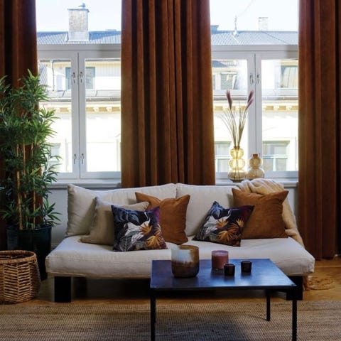 Ekstra gardinstoff til f.eks. puter hvis ønskelig.