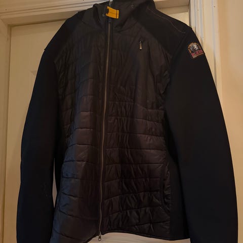 Parajumpers Active hybrid herrejakke i størrelse 3XL. Jakken er grå og laget hovedsakelig av polyamid. Den har vattert front og rygg med glidelås i full lengde. Ermene og sidene er i mykere stoff for økt bevegelighet. Jakken har karakteristiske Parajumpers-detaljer, blant annet logo på ermet og kontrastfargede oransje detaljer ved skuldre og innside av krage. Egnet som lett ytterjakke eller mellomlag i hverdagen og til utendørs bruk.