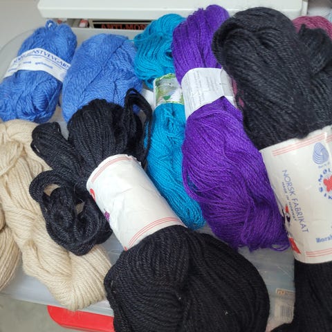 Kun noen meter er oppreksgarn se tekst på bilde 4, noen nøster er det tatt av mens andre er det ikke brukt av.