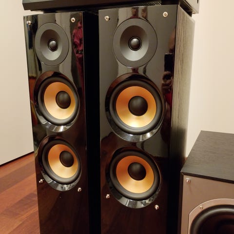 2 pene svarte høytalere fra Andersen, de er på 100 watt hver , de har noen små hakk i treet på siden ellers hele og fine med god lyd, kom gjerne med bud men skam bud svares ikke