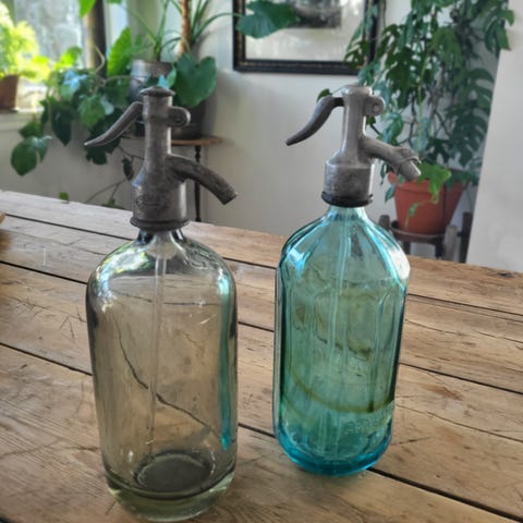 14 cm høy, 22 cm i diameter glassflaske merke Vivat. Kan muligens være fra Østerrike.