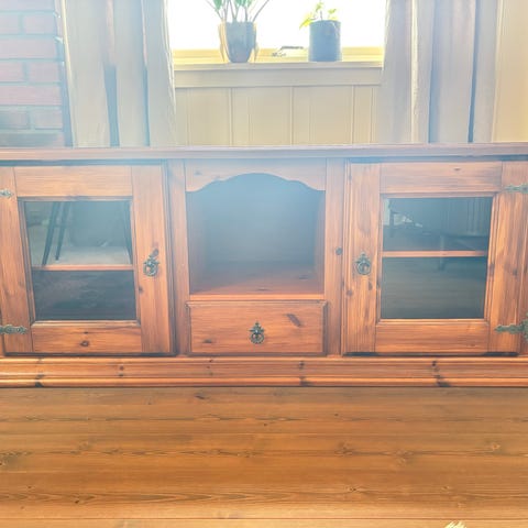 Klassisk TV-benk i tre – solid og romslig